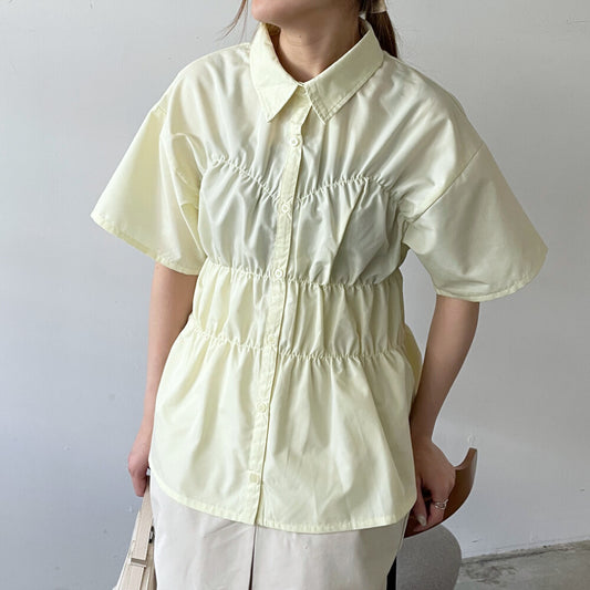 Blouse Broad Shirring Short Sleeve Shirt 立體皺褶短袖襯衫