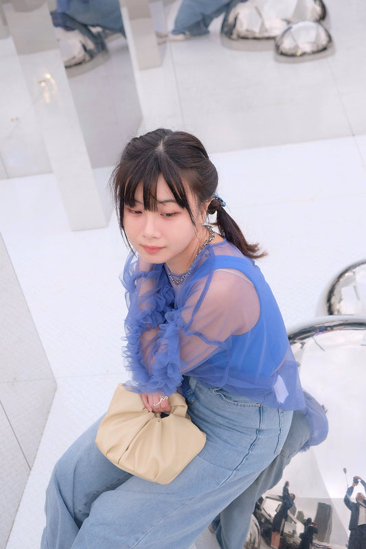 Ruffle Candy Sleeve Sheer Pullover 🍬 糖果荷葉袖透け感紗上衣