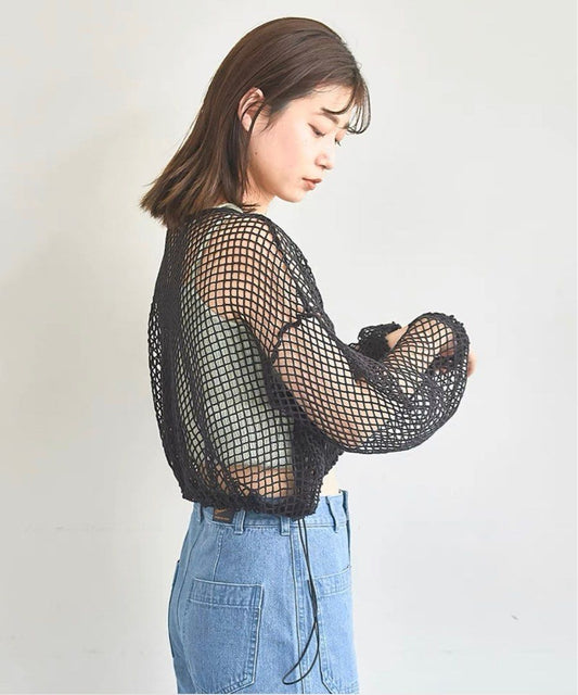 𝙼𝚎𝚜𝚑 𝙺𝚗𝚒𝚝 𝚂𝚑𝚒𝚛𝚝 ⊹ 網眼針織短版抽繩上衣