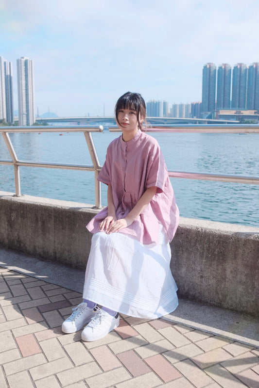 Sale<日常>JP 麻質立領半開鈕襯衫